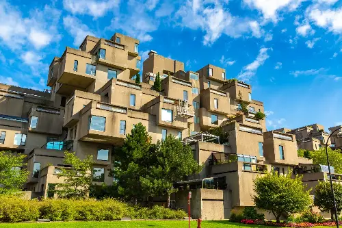 カナダのモントリオールにある「ハビタット67」は、1967年に開催された万国博覧会のために建てられた住宅です。モシェ・サフディによるこのプロジェクトは、積み重ねられたコンクリート製のボックスが特徴で、個々の住居がプライベートな屋外スペースを持つという、当時としては革新的な発想でした。