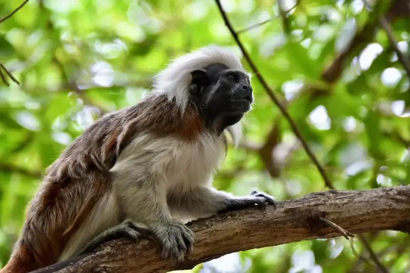 その美しさと独自の生態ゆえ、ワタボウシタマリンはペット目的の密猟や、森林伐採によって絶滅の危機にさらされています。