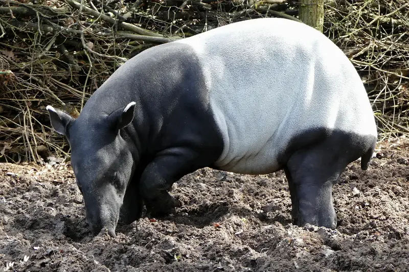 マレーバクは他のバク類と比べても体色が非常に特徴的です。南米に生息するバクは全身が茶色や黒っぽい体色ですが、マレーバクほど極端なツートンカラーは見られません。進化の過程で、東南アジアの森で生き抜くために特別な模様を得たと考えられています。
