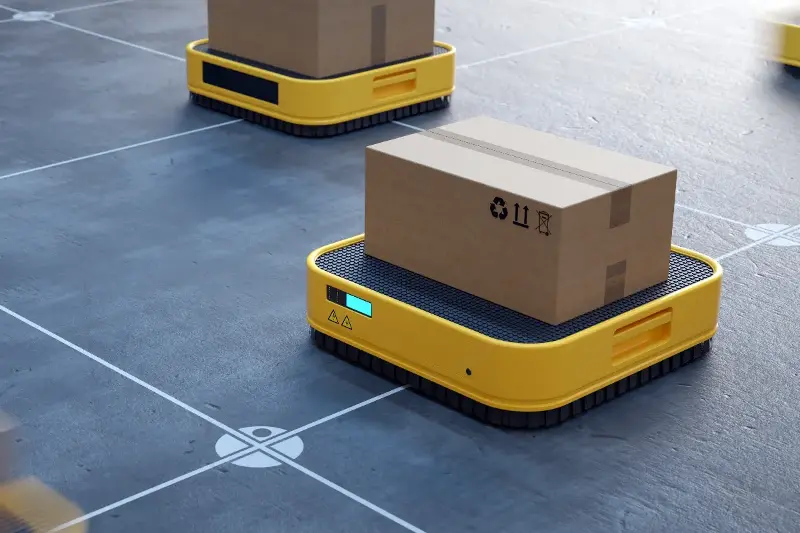 - 小型搬送ロボットが床の上を自在に走り回る