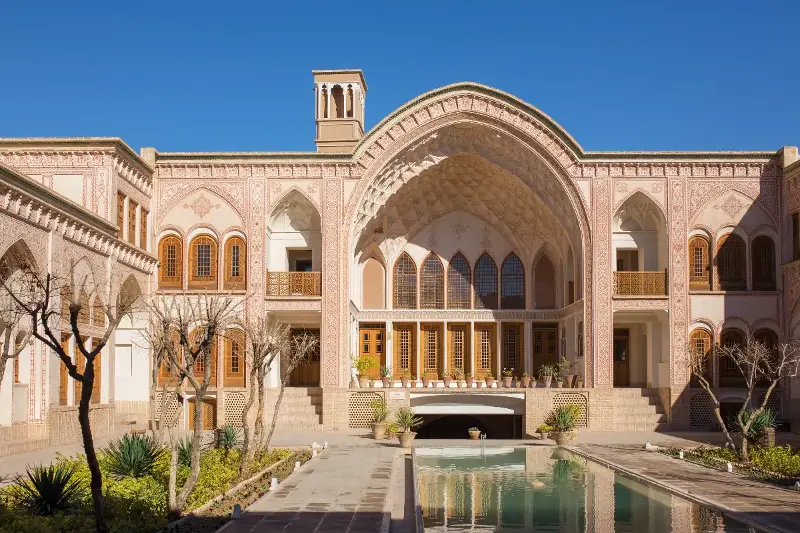 カシャーンの魅力は、バザールだけにとどまりません。市内には数多くの歴史的邸宅やドーム型の建築物が点在しています。特に有名なのが、19世紀の裕福な商人一族が住んでいたバーグエ・ボルージェルディ邸やタバータバーイ邸です。これらの邸宅は、見事な石膏細工、色彩豊かなステンドグラス、大きな中庭を持ち、当時の贅沢な暮らしぶりを今に伝えています。細部にまでこだわったペルシャ建築の粋を、ぜひ足を運んで体感してみてください。