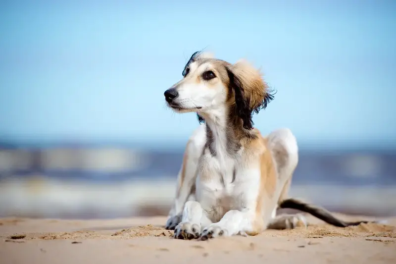 サルーキの被毛は滑らかで短いもの、ややふさふさとした長いものと2種類あり、どちらも美しい光沢を持っています。また、毛色も多様で、クリームやゴールド、ブラック、ホワイトなどバリエーションに富んでおり、唯一無二の個性を感じさせます。